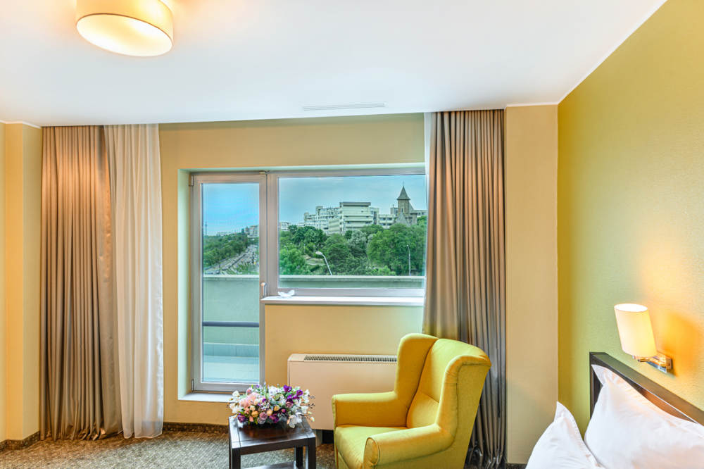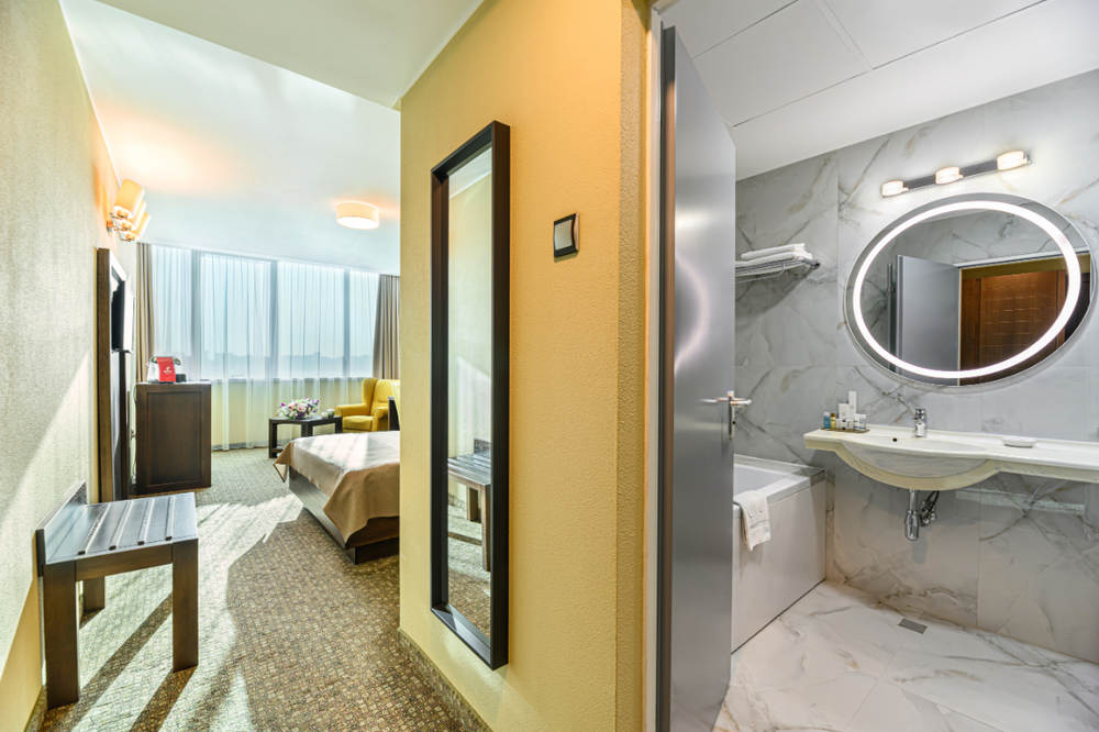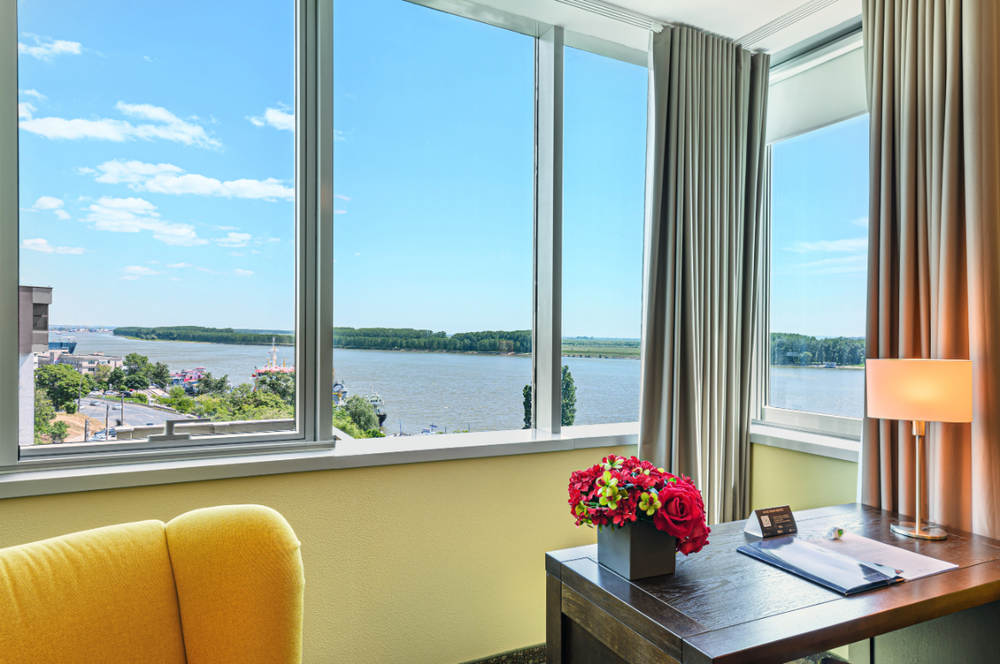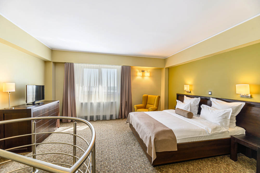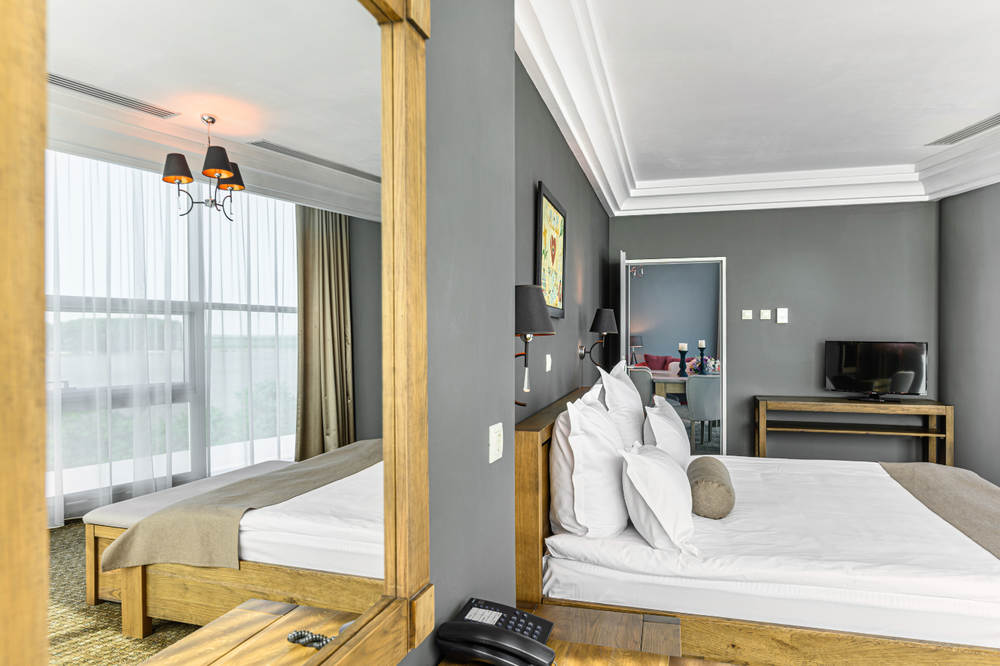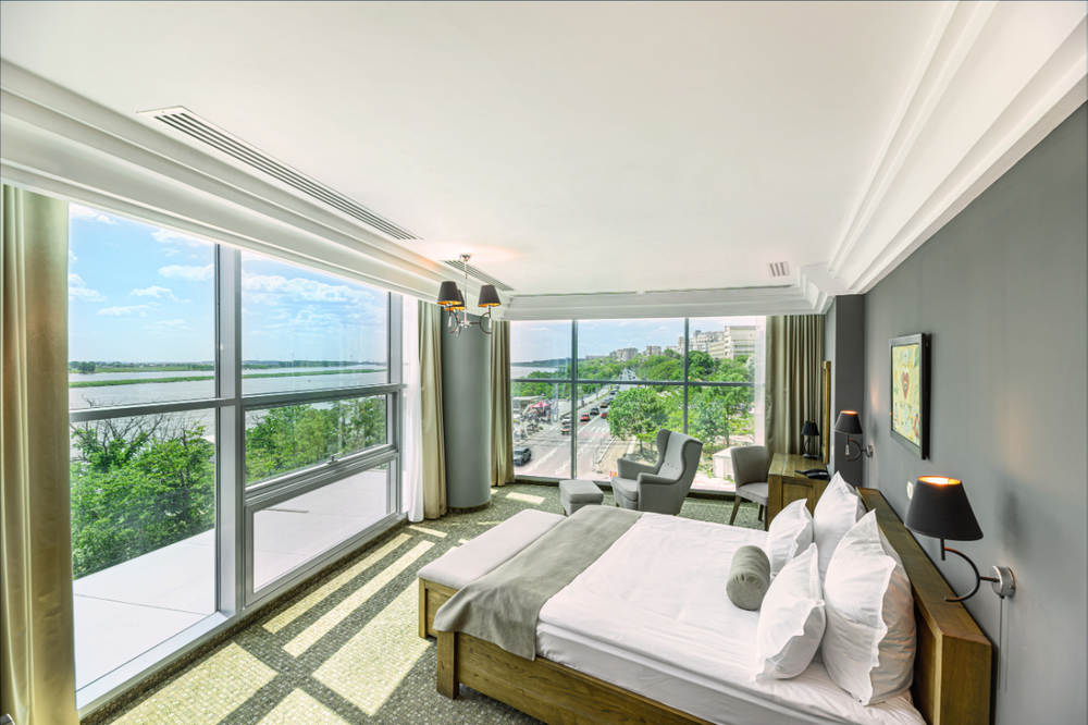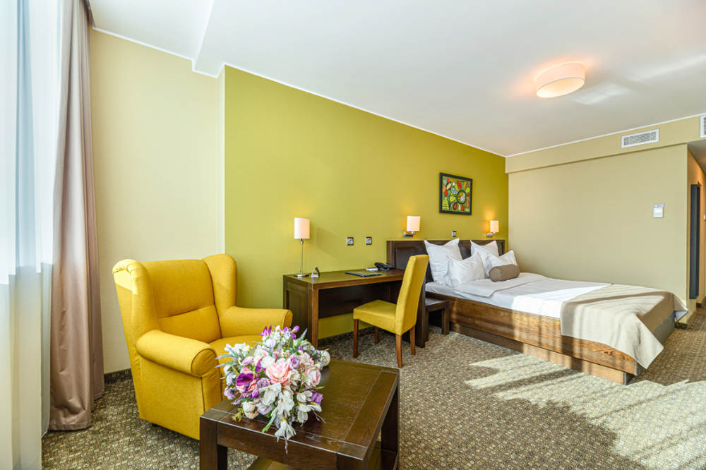 Spațioase și aerisite, in camerele noastre mobilate elegant cu 2 paturi single sau cu un pat de dimensiuni king 180*200 și o baie cu cada si articole de toaletă gratuite, oaspeții se pot bucura de o experiență VegaHotels cu adevărat de neuitat. Camerele Business Double ofera vederi spre curte sau partial catre Dunare, TV Led HDTV de 32 inch (80 cm) cu mufa USB , WiFi, birou de lucru, minibar, facilitati preparare ceai si cafea instant, uscator de par.