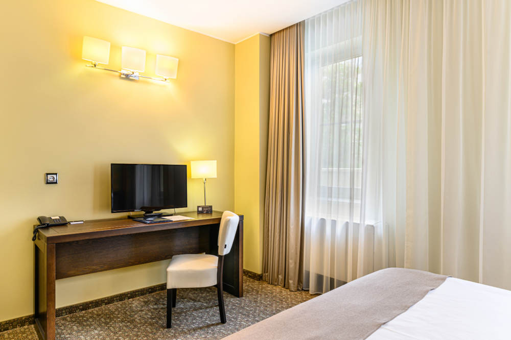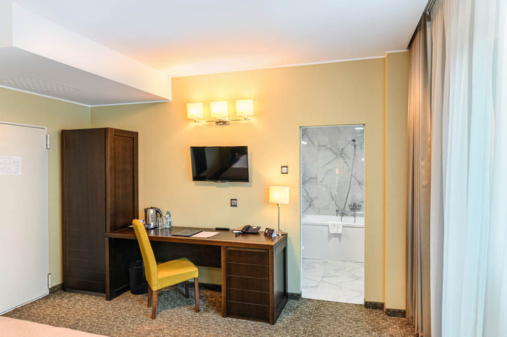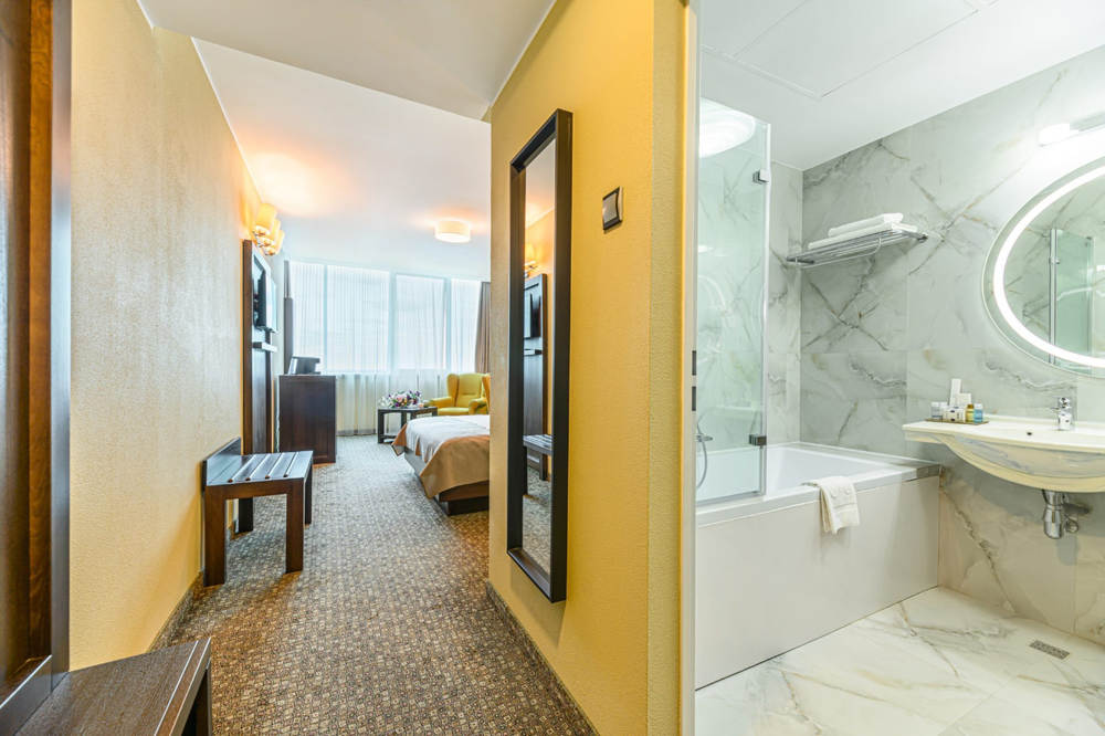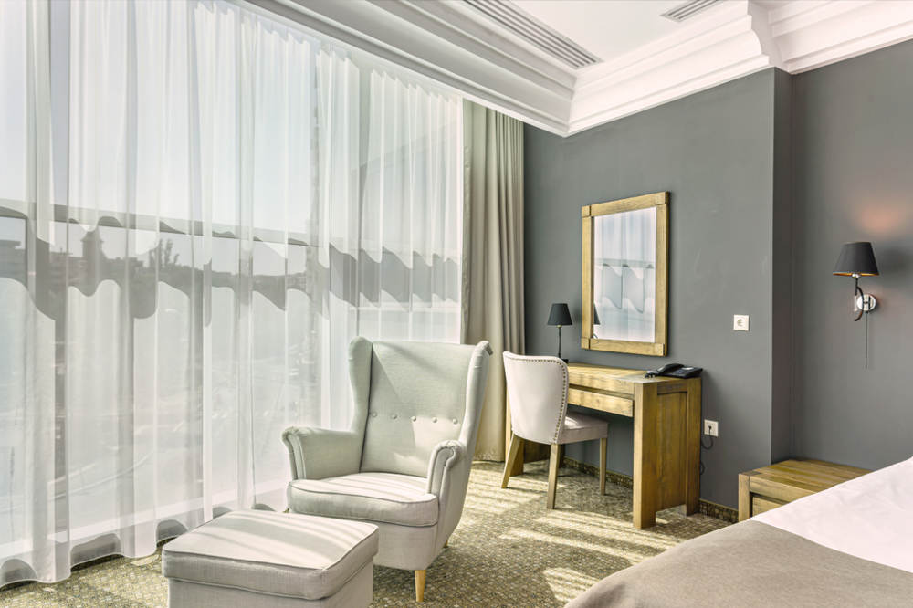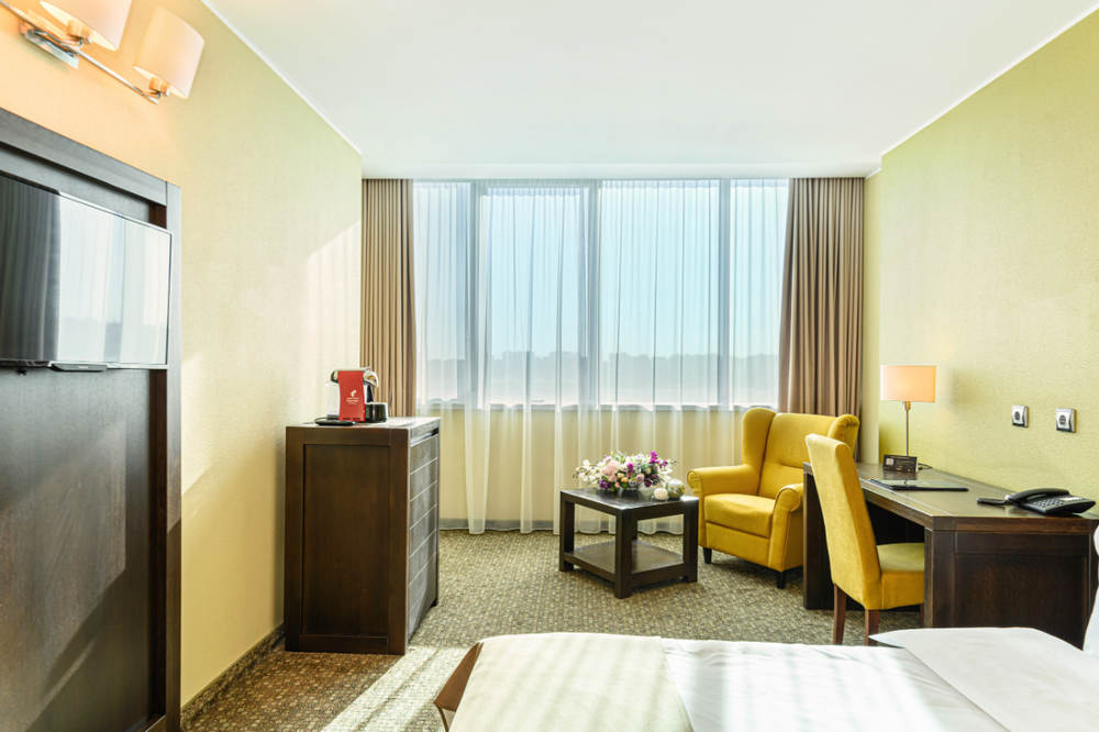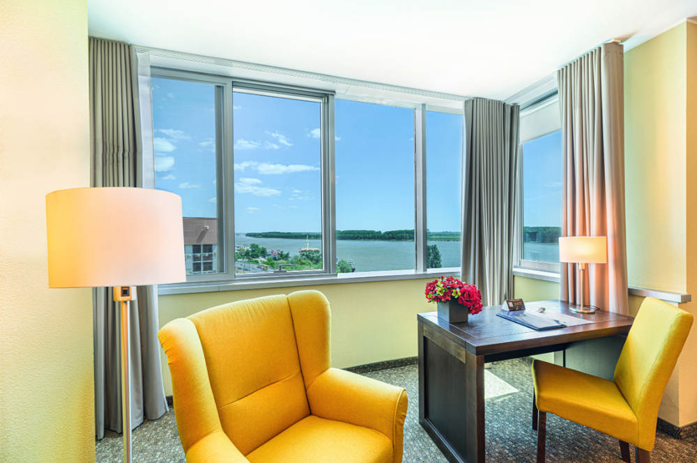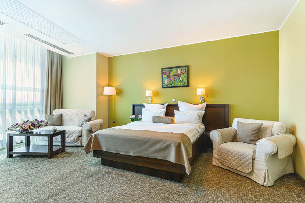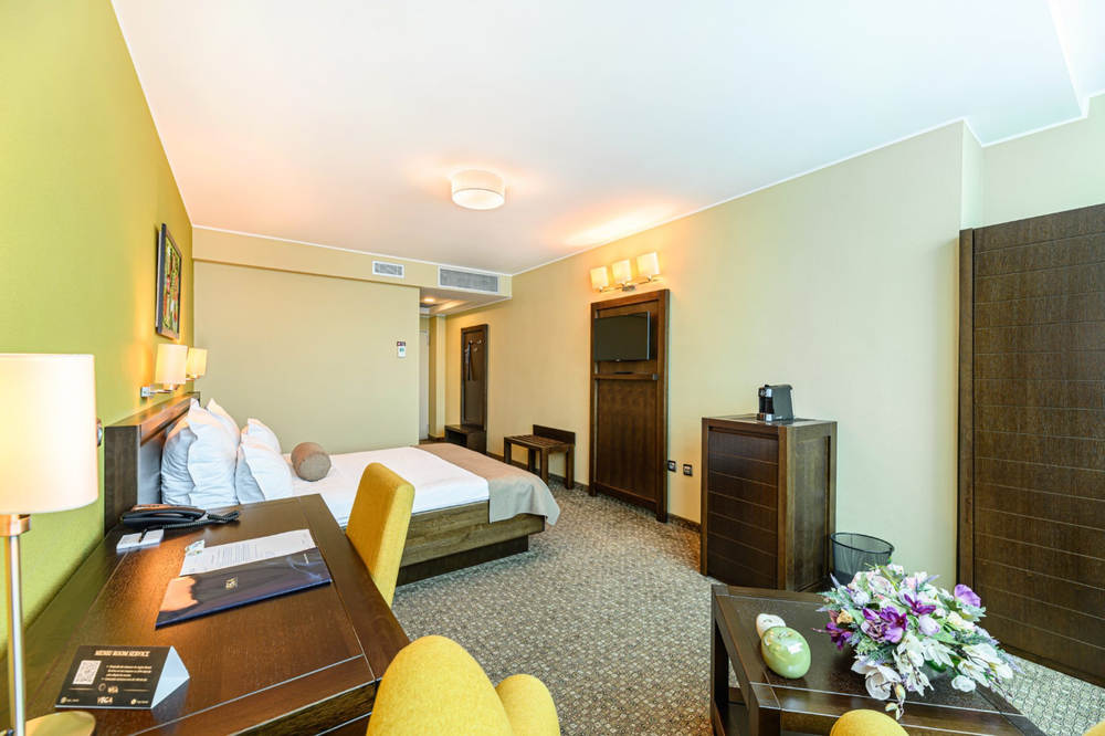 Spațioase și aerisite, in camerele noastre mobilate elegant cu 2 paturi single sau cu un pat de dimensiuni king 180*200 și o baie cu cada si articole de toaletă gratuite, oaspeții se pot bucura de o experiență VegaHotels cu adevărat de neuitat. Camerele Business Double ofera vederi spre curte sau partial catre Dunare, TV Led HDTV de 32 inch (80 cm) cu mufa USB , WiFi, birou de lucru, minibar, facilitati preparare ceai si cafea instant, uscator de par.